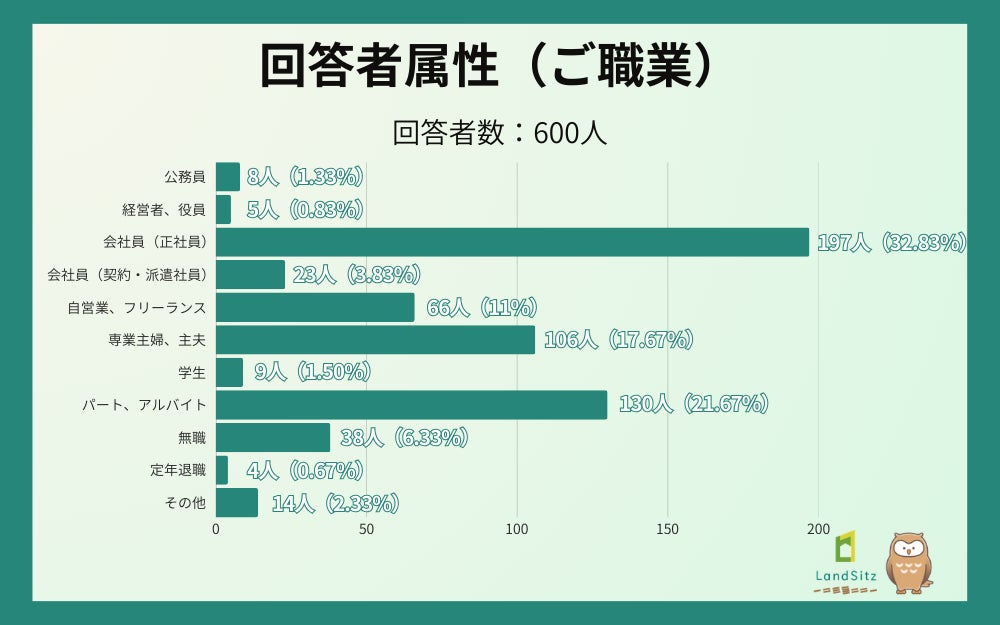 不動産投資に関する情報を発信するオウンドメディア「不動産投資の裏側を知る教科書」(運営:株式会社LandSitz、https://landsitz.biz/)は、全国の20代~70代の男女600名を対象に、マイホームに関する意識調査を実施いたしました。