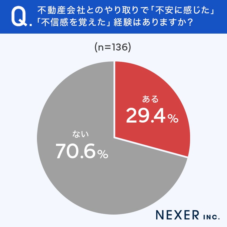 ■29.4%が、不動産会社とのやり取りで「不安に感じた」「不信感を覚えた」経験が「ある」と回答