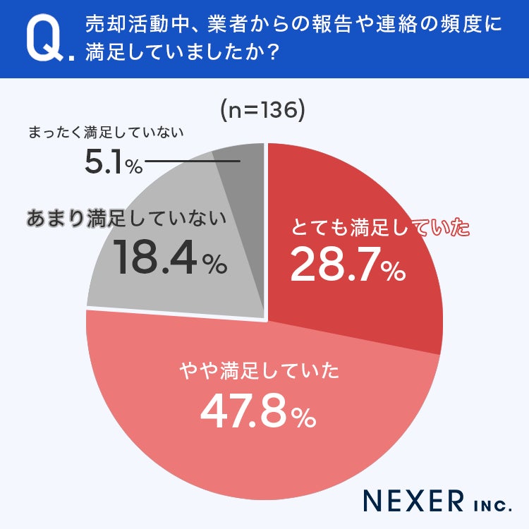続いて、売却活動中の業者からの報告や連絡の頻度に対する満足度について聞いてみました。