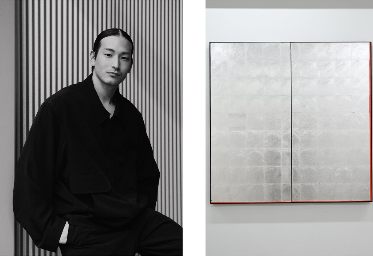 Photo | Noam Levinger 2025年 / Stillness 010, Japanese paper, Silver leaf, Cinnabar, Iron frame,