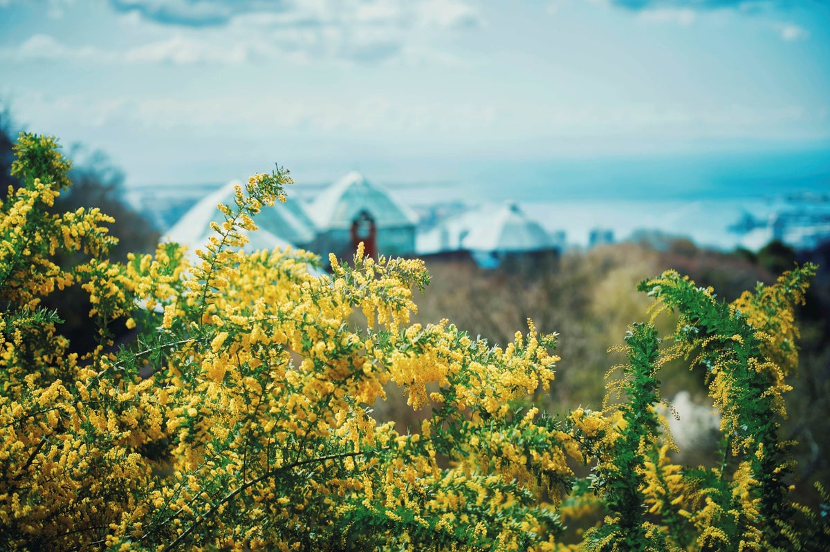 ミモザは、約100種のフレッシュハーブを植栽展示するハーブミュージアムに隣接する散歩道に植栽しています。高台のデッキからは、可憐なミモザ越しに神戸の景色と輝くガラス張りのグラスハウス(温室)の絶景を望むことができます。また、散歩道には、ウメやカラフルな野菜畑のほかこれからはコブシ、山桜などが彩りミモザと早春の花々・植物とのコラボレーションもお楽しみいただけます。ミモザの季節には、可憐なクリスマスローズにも出合えます。