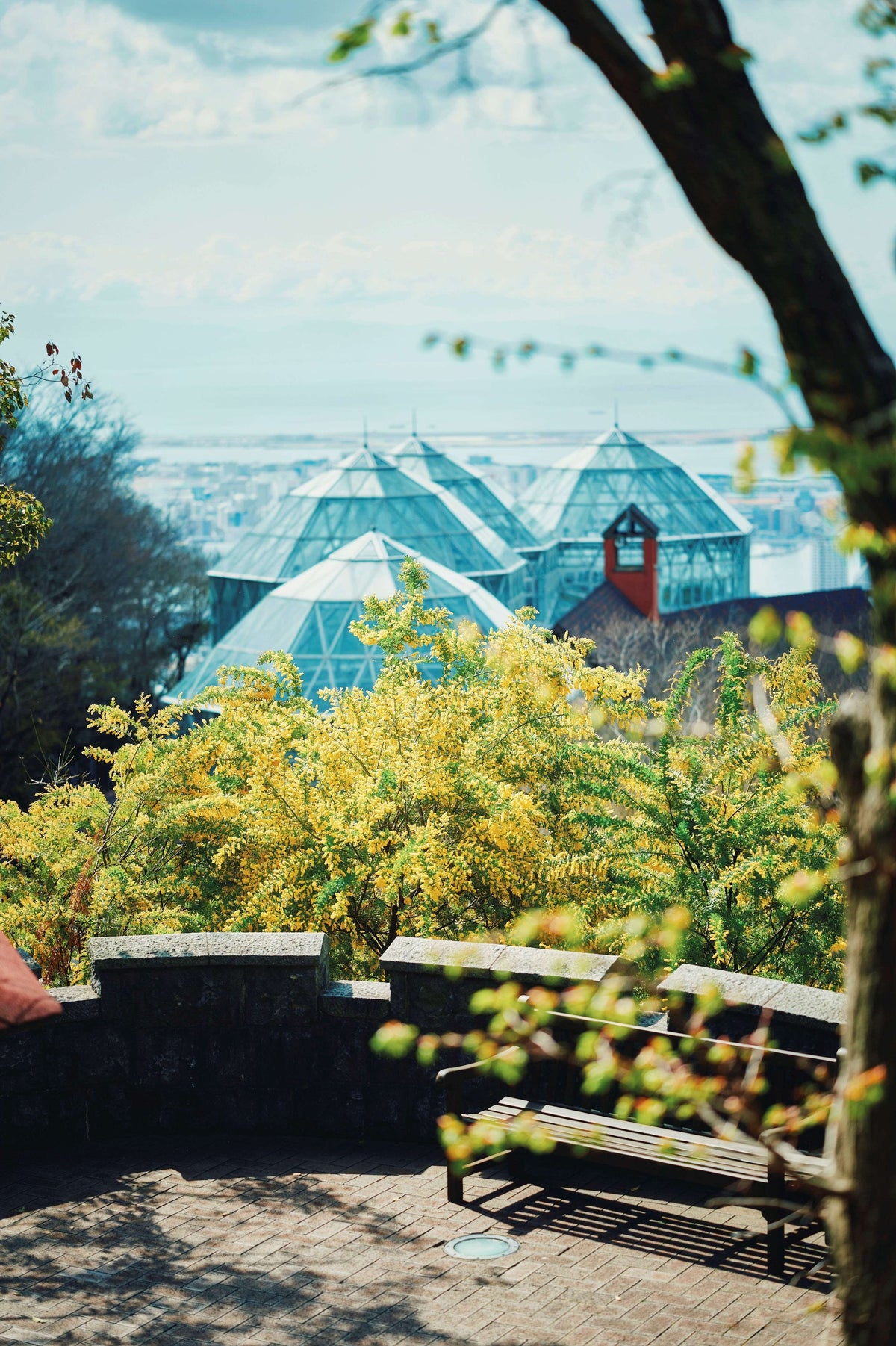 デッキから眺めるミモザと神戸の景色、グラスハウス(温室)