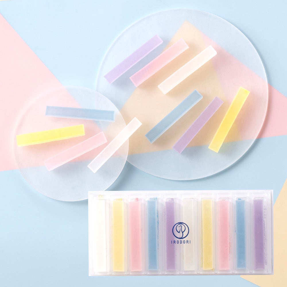 IRODORI一番の人気商品。伝統の「琥珀糖」をパステルのようなおしゃれなお菓子に仕上げました。ローズやミント、カモミール…5種のフレーバーを「しゃりっ」「つるっ」と独特の食感とともに。