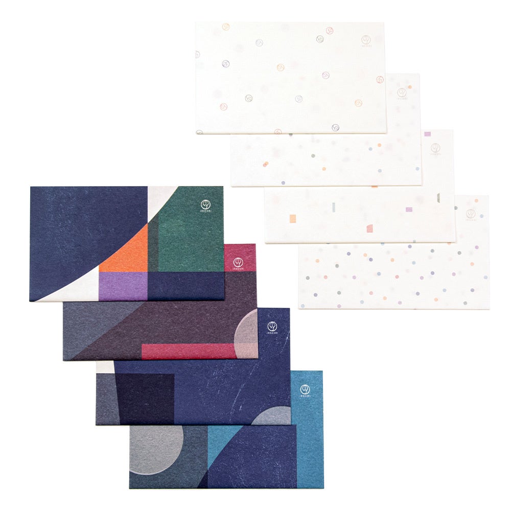 IRODORIオリジナルデザインの懐紙。生菓子やお干菓子などのお菓子をのせてお使いいただけます。お土産のお菓子に添えていただくのもおしゃれな一品です。(4種入り2パターン。種類はお任せください)