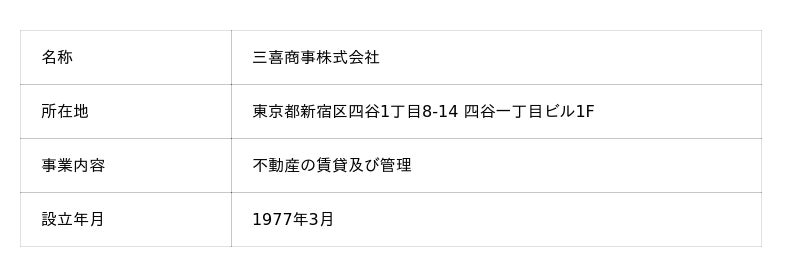 三喜商事は東京都新宿区を中心に長年にわたり不動産管理業及び不動産賃貸業を運営しております。今回の株式取得により当社としての収益基盤を強化するとともに、都内複数エリアに保有する不動産の将来的な有効活用も行って参ります。
