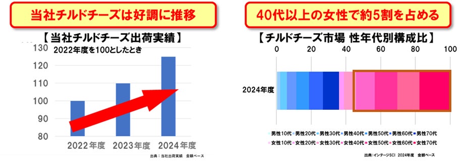好調な当社のチルドタイプチーズ「なめらか チータラ」は、なめらかな食感が特長で、主に40代以上の女性から支持をいただいています。