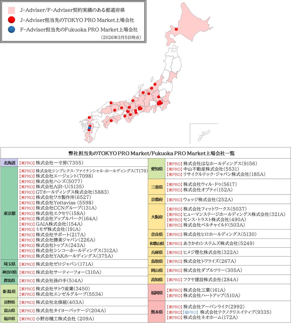また、2024年12月には、福岡証券取引所が運営するプロ投資家向け市場、Fukuoka PRO Marketの上場指導・審査を行うF-Adviser資格も取得いたしました。