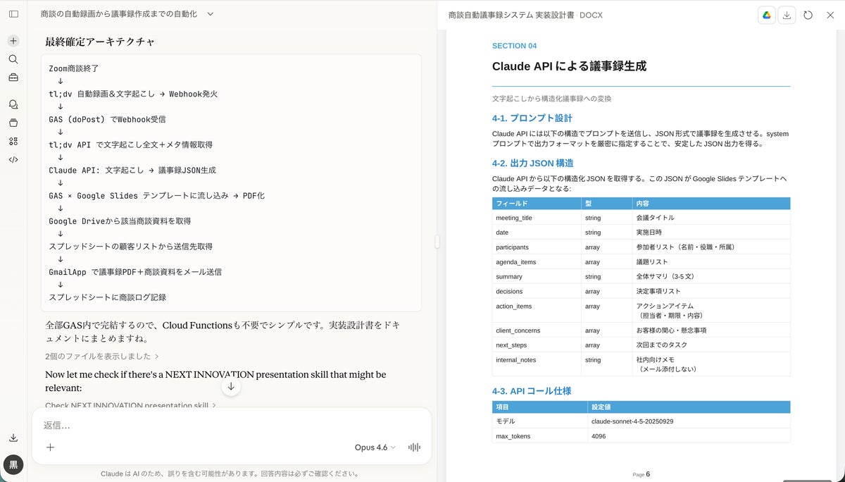 ・GASコード一式(約1,400行):Webhook受信、Claude API連携、スライド生成、メール送信まで含む完全なコード
