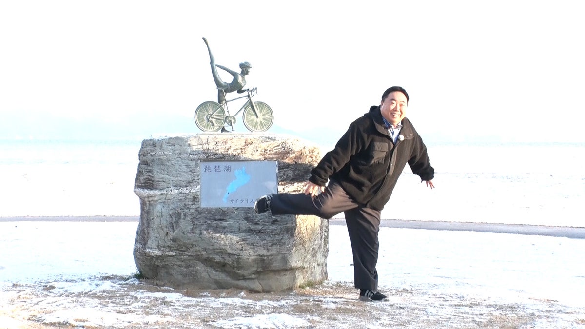 まず訪れたのはBIWAKOモニュメント。琵琶湖をバックに広がる絶景を前に、塚地武雅(ドランクドラゴン)もフォトスポットで記念撮影を。