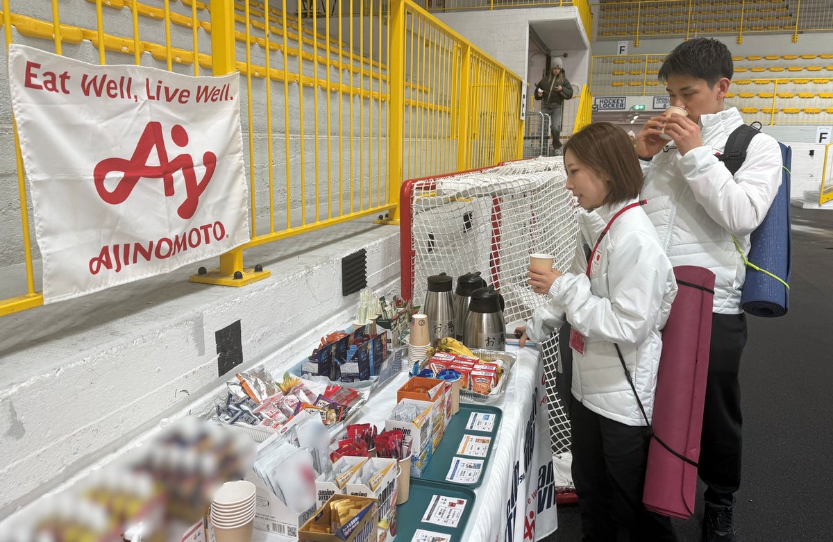 味の素株式会社(社長:中村 茂雄、本社:東京都中央区、以下味の素)は、 2003年より日本代表選手およびその候補選手を対象に「アミノサイエンス(R)」によるコンディショニングサポート活動「ビクトリープロジェクト(R)」(VP)を展開しています。ミラノ・コルティナ2026冬季オリンピックでは、TEAM JAPANへの栄養サポート拠点「JOC G-Road Station」の運営に全面協力しました。 今回はミラノエリアをメイン拠点としながら、リビーニョ、プレダッツォエリアにもサテライト拠点を設置。選手村の食事を補完するため、食べ続けやすい、食べなれた「和軽食」を提供し、ミラノではのべ約850人のTEAM JAPANが利用。「すごくリラックスできる空間で、スタッフの方たちも温かく、なかなか調子が上がらないときも頑張ろうと思うことができた。」と嬉しいコメントもいただきました。