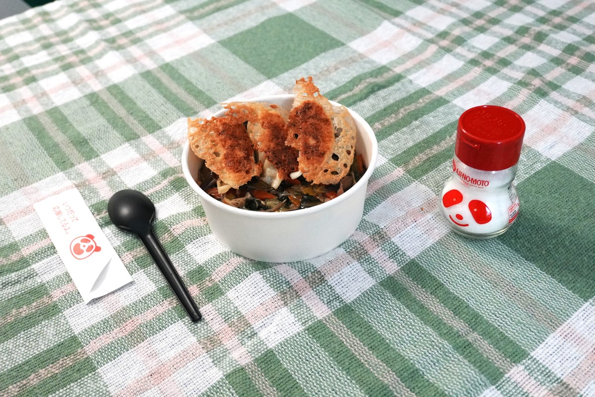 【提供メニュー:国産白米、具沢山汁物、主菜・副菜(パウチ惣菜)、納豆、梅干し、だし、インスタントコーヒー、ミラノエリアでのみ三日に一度スペシャルメニュー提供(後述)】