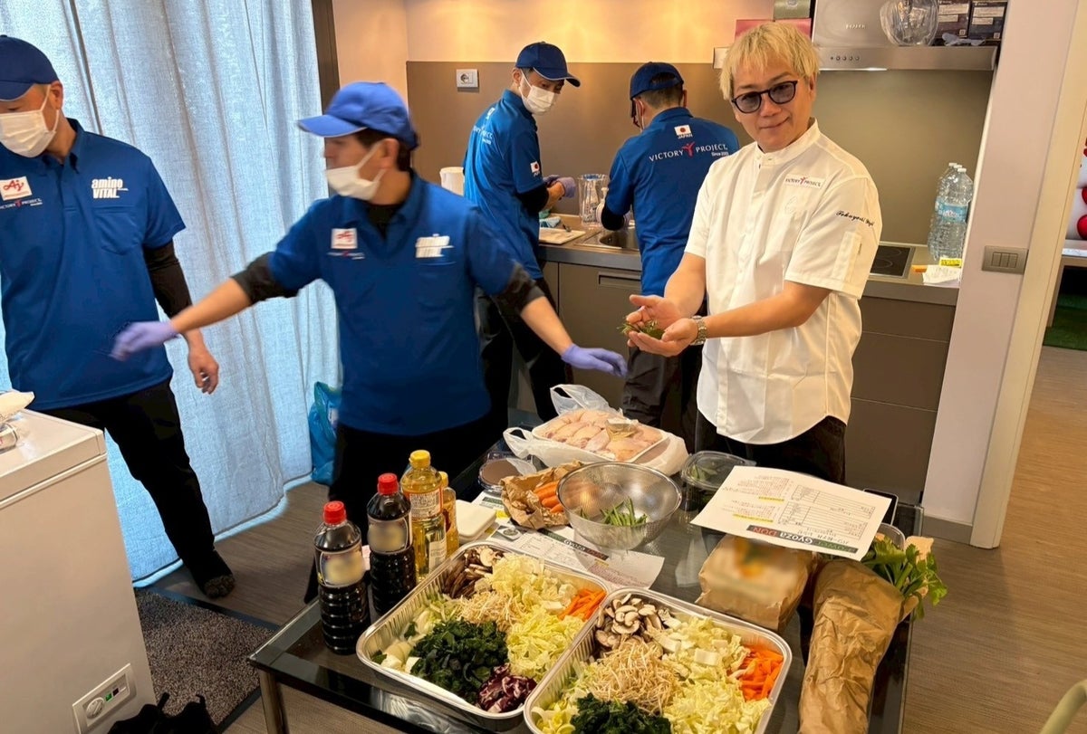 ハードな環境下で心身のコンディション維持の鍵となるのは“食事”と考え、ミラノ現地では専用の献立を準備。栄養素と選手の好みを両立した、“豚と餅のおろし煮”や“焼きあごだし鍋”など、毎日朝・昼・夕の3食、合計30食のサポートを行い、新濱選手の挑戦に伴走しました。