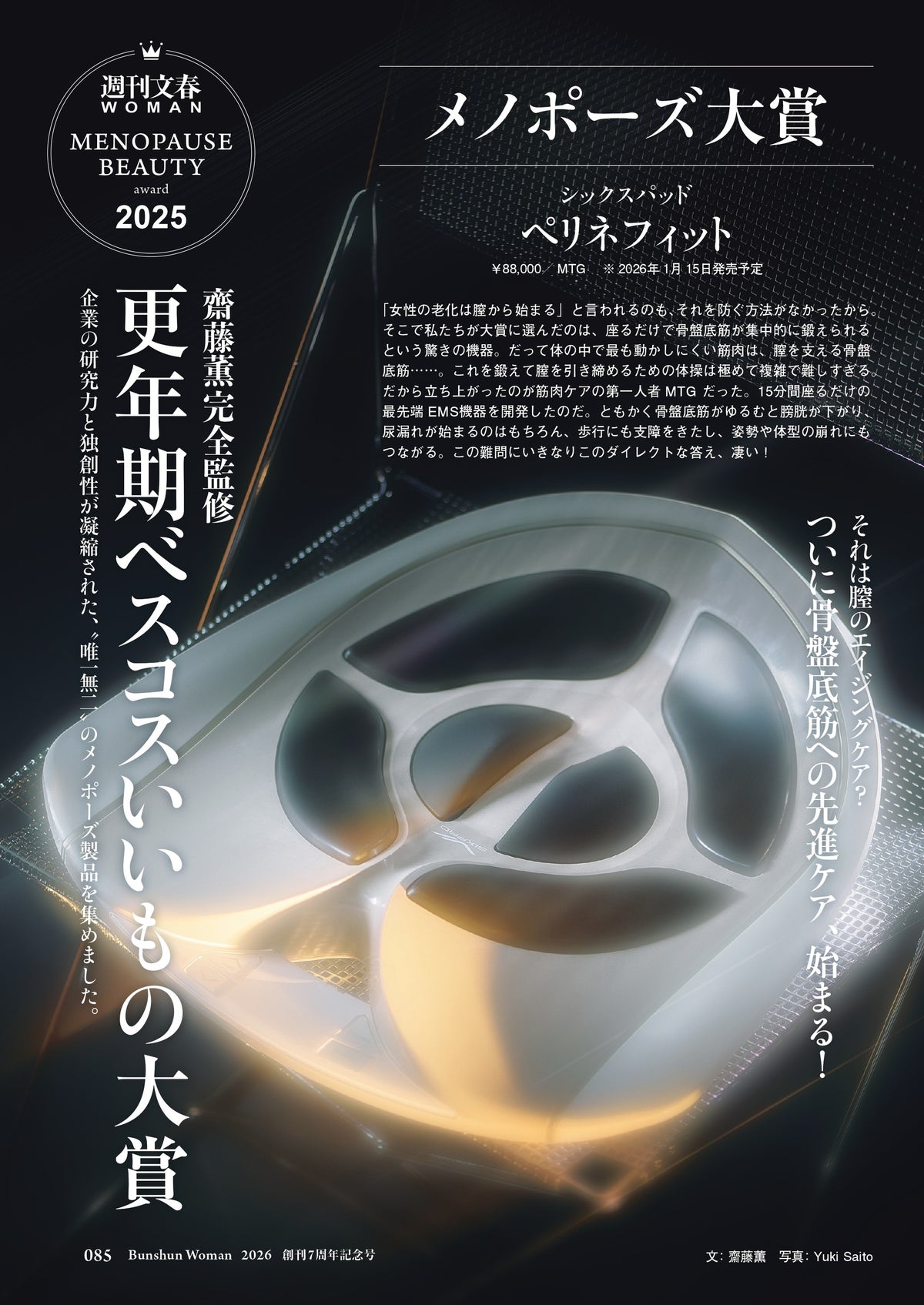 第3回で栄えある本賞「メノポーズ大賞」を受賞したのは、シックスパッドの「ペリネフィット」。座るだけで骨盤底筋を鍛える先進的なアプローチに齋藤薫さんが賛辞を送りました。