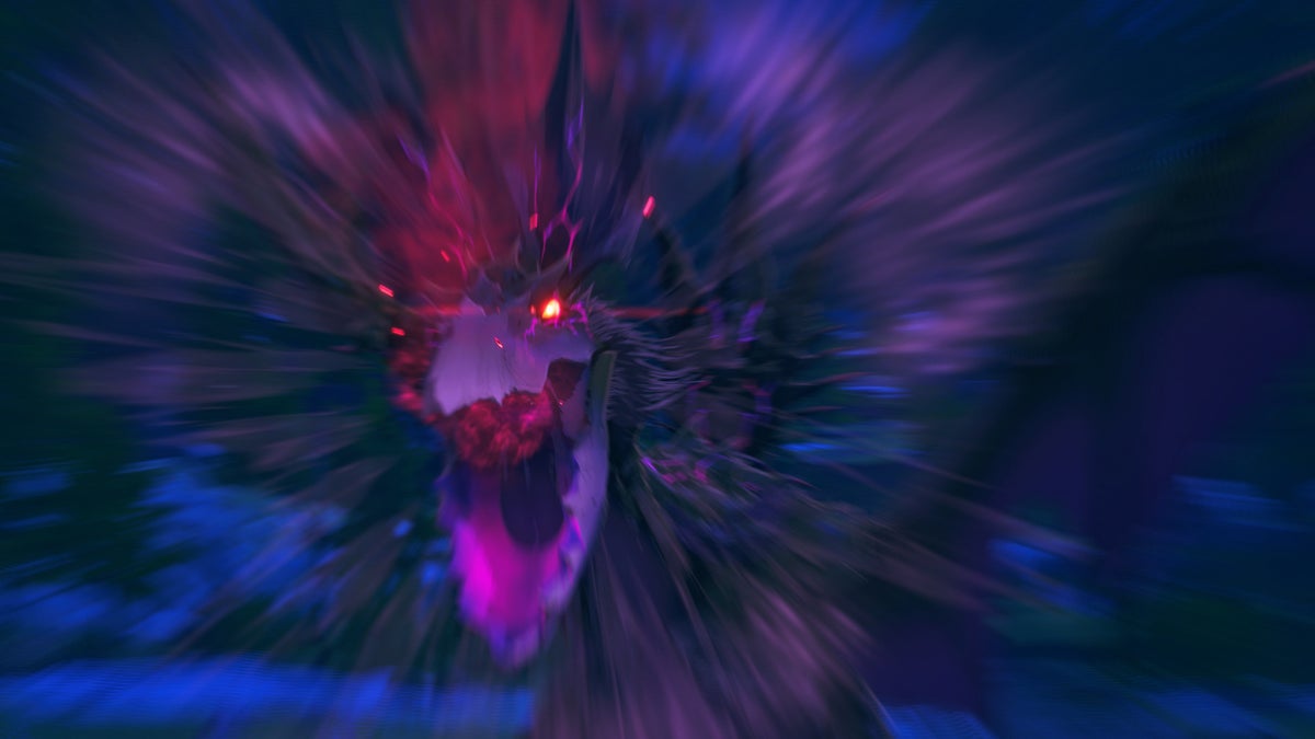 侵獣と化したイャンガルルガ。通常種を遥かに凌駕する、恐るべき戦闘力と毒性を持つ。体表に現れた紅紫の紋様は、体内にある無数の毒腺から染み出した毒液である。体内の毒の生成過程がエネルギーの代謝を促進しており、毒液が分泌されるほどに、全身の神経伝達速度と筋力が向上するという驚くべき性質を持つ。