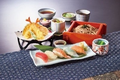麺・天ぷら・寿司・茶わん蒸し・小鉢をセットにした「サガミの
