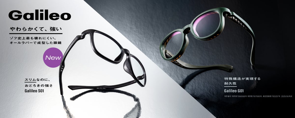 株式会社インターメスティックが運営するメガネブランド「Zoff」は、ゾフ史上最も壊れにくい・一切金属を使用しないオールラバーで成型したメガネ「Galileo」シリーズから、スリムなのにおどろきの強さの「Galileo S01」と、驚異的な衝撃耐性を備えた「Galileoレンズ」を発売します。