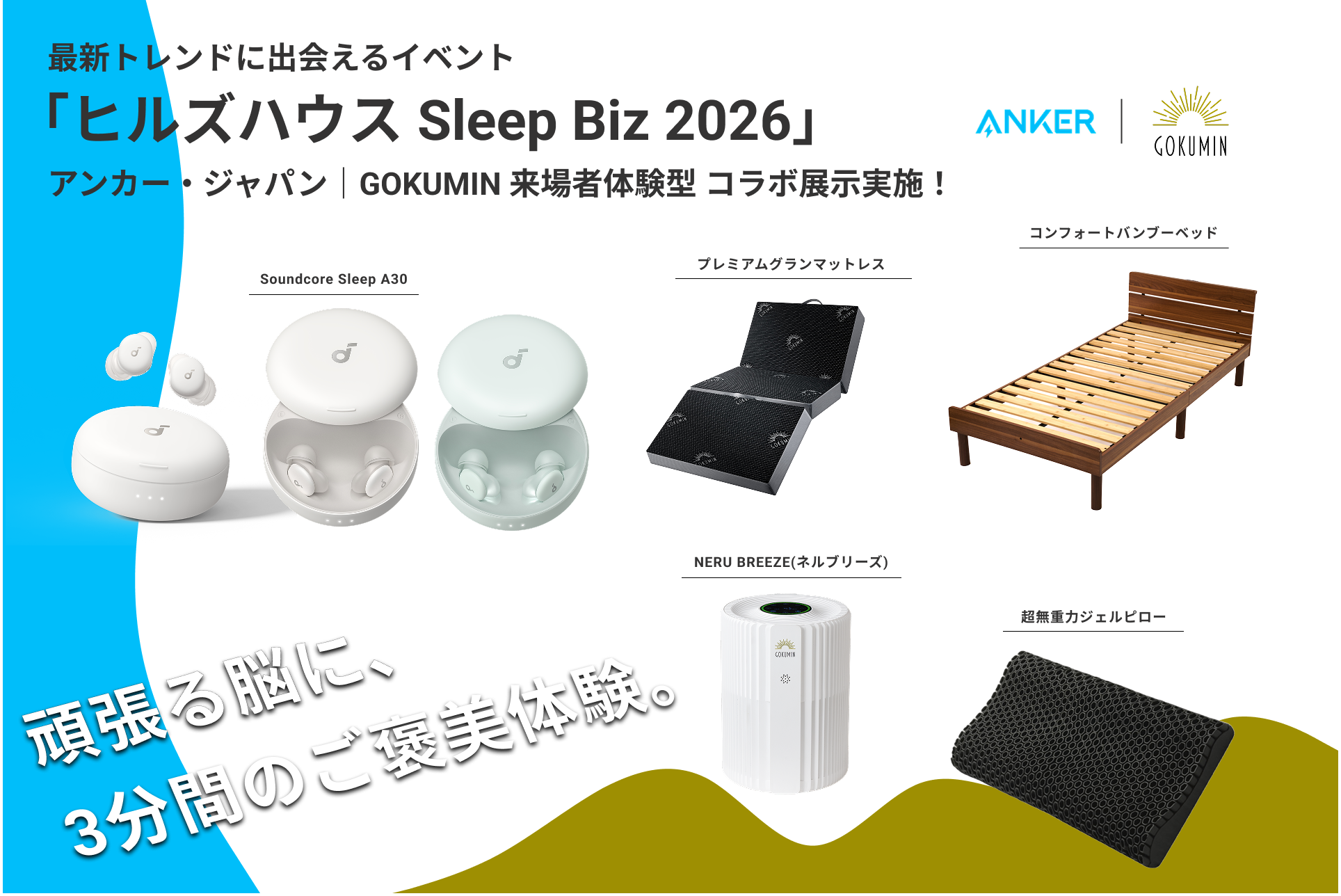 株式会社KURUKURU(本社:東京都中央区、代表取締役:関沢 康寛)が展開する総合寝具ブランド「GOKUMIN」は、2026年3月10日に開催される睡眠啓発イベント「ヒルズハウス Sleep Biz 2026」に出展いたします。本イベントは、2026年3月13日の「世界睡眠の日(World Sleep Day)」に合わせて企画されたもので、睡眠に関する国内外の現状や課題、最新知見を発信するとともに、メディアや麻布台ヒルズ内のワーカーといった来場者(※)が実際に体験できる機会を提供することを目的として開催されます。