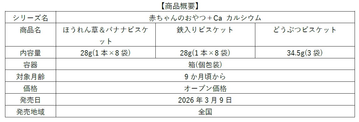 「赤ちゃんのおやつ+Caカルシウム」新アイテム追加・リニューアル発売