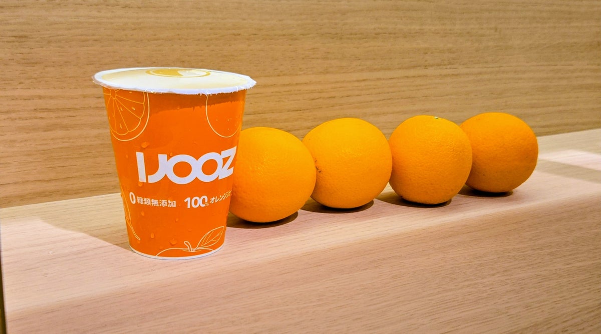 現在、気候変動や病害の影響により、加工用オレンジ果汁(冷凍濃縮など)の国際価格はここ数年で約3倍に高騰しています(※1)。長期保存に適した濃縮還元ジュースは私たちの生活に不可欠な役割を担っていますが、その供給網が打撃を受ける中、IJOOZは独自のアプローチを実現しています。私たちは加工された「果汁」ではなく、世界中の農園から直接、糖度や酸味のデータに基づき厳選した「丸ごとのオレンジ(果実)」をコンテナ単位で大量調達しています。日本全国への自販機設置拡大に伴う「規模の経済」を最大限に活かすことで、値上げが相次ぐ市場において、あえて「還元(一部地域での特別割引価格)」に挑戦しました。