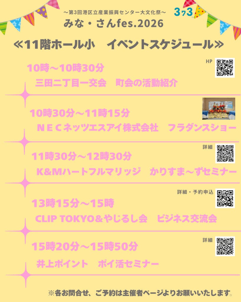 ※予約要のイベント・セミナーは各開催者お問い合わせ・お申込み(別サイト)より予約してください。(みな・さんfes.2026本体の予約とは別に予約が必要です)
