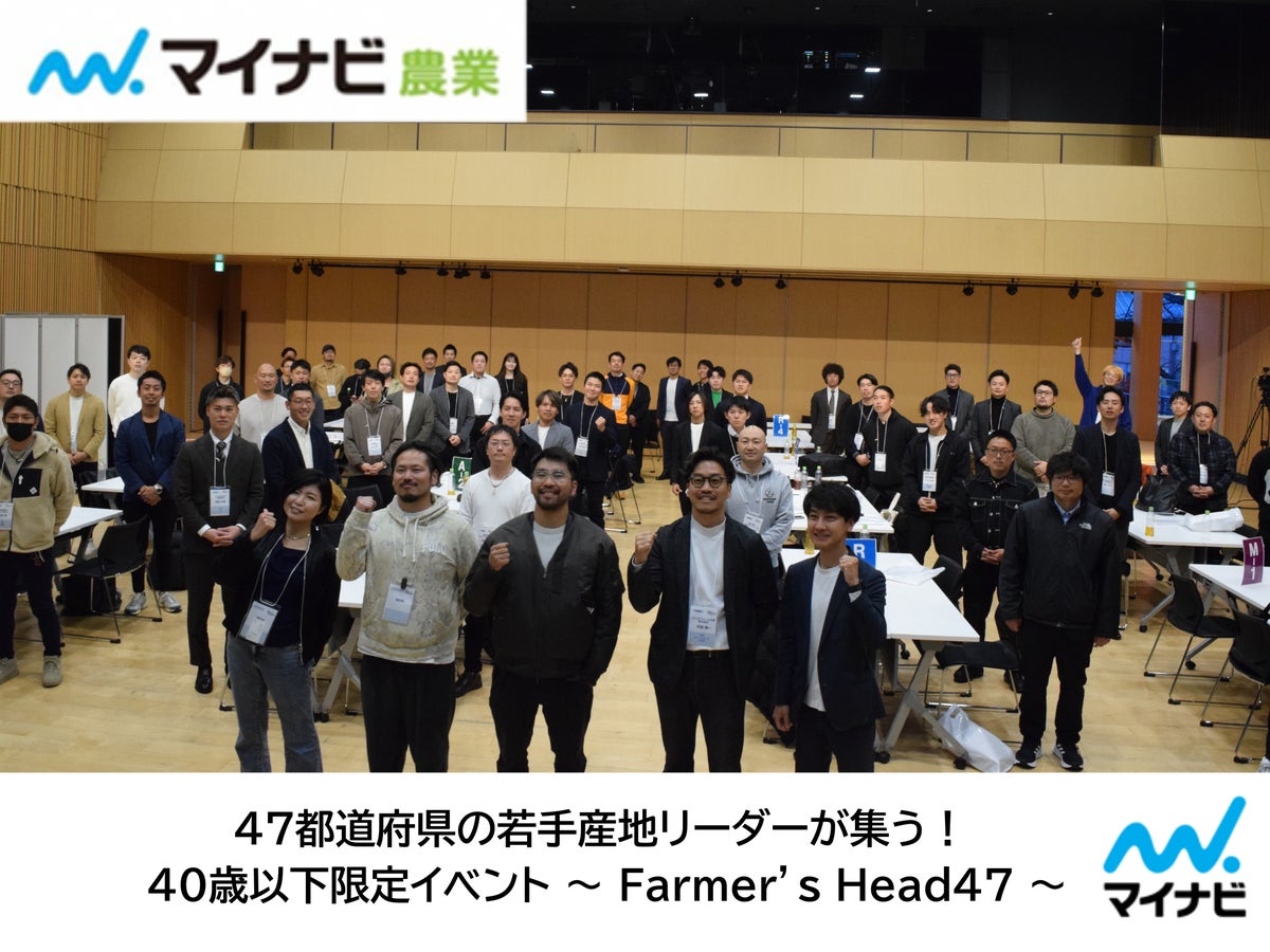 株式会社マイナビ(本社:東京都千代田区、代表取締役 社長執行役員:粟井俊介)が運営する『マイナビ農業』(https://agri.mynavi.jp/)は、3月5日(木)に神田明神ホールにて、47都道府県の若手農家経営者が集まり、先進的な取り組みやノウハウを共有し、新たな産地連携や事業創出につなげることを目的とした『Farmer’s Head47 Presented by マイナビ農業』を初開催しました。