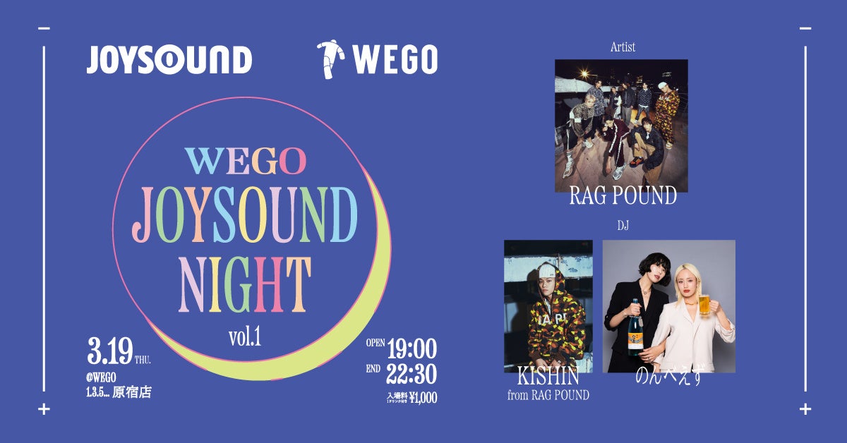 株式会社ウィゴー(本社:東京都港区 代表取締役社長:園田恭輔)は、「JOYSOUND」ブランドでカラオケ事業を展開する株式会社エクシング(本社:愛知県名古屋市 代表取締役社長:水谷 靖)との協業プロジェクトとして、カラオケ文化と若者カルチャーを融合した体験参加型イベント『WEGO JOYSOUND NIGHT』を始動し、2026年3月19日(木)にWEGO 1.3.5... 原宿店にて第一回を開催いたします。