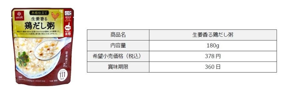 「グルメなおかゆシリーズ」第三弾の本商品は、だしにこだわったやさしい味わいの本格中華おかゆ。国産鶏出汁と椎茸の旨みに生姜のさわやかさが調和したやさしい味わいの「鶏だし味」。本格的なだしと素材の旨みや食感のバランスを追求し、満足感がありながらも朝食にぴったりなやさしい味わいに仕上げました。ジャスミンライスを使用し、香り深い味わいを楽しめる中華粥です。