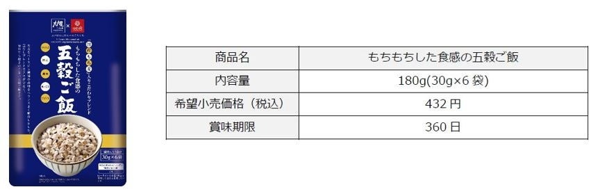 全国に300店舗以上展開する「大戸屋ごはん処」で提供されている「五穀ご飯」。その味を自宅で再現できる本商品は、発売以来多くのお客様に愛されてきました。 今回のリニューアルでは、食感、香ばしさ、美味しさをさらに追求。炊きたてはもちろん、時間が経って冷めても「もちもち」が続く品質に磨きをかけ、お弁当やおにぎりでもお店の味を楽しめるよう進化しました。お店で食べるおいしく健康的な五穀ご飯の味わいをご家庭でお楽しみいただける商品です。