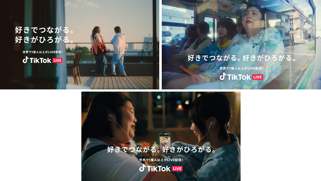 ショートムービープラットフォーム「TikTok(ティックトック)」のLIVE配信機能TikTok LIVEの初となる新テレビCM「リアルフレンズ・トーク」シリーズ全3篇を2026年3月9日(月)よりWEB上にて公開いたします。本CMにはアーティストのあのと、お笑い芸人・紅しょうがの熊元プロレスが出演し、TikTok LIVEの「好きでつながる。好きがひろがる。」楽しさを「トーク篇」「音楽篇」「ゲーム篇」の3篇で表現します。