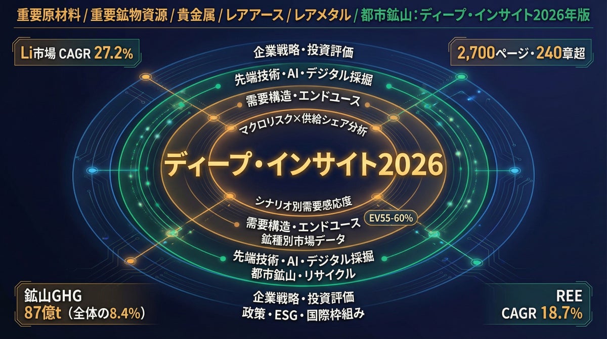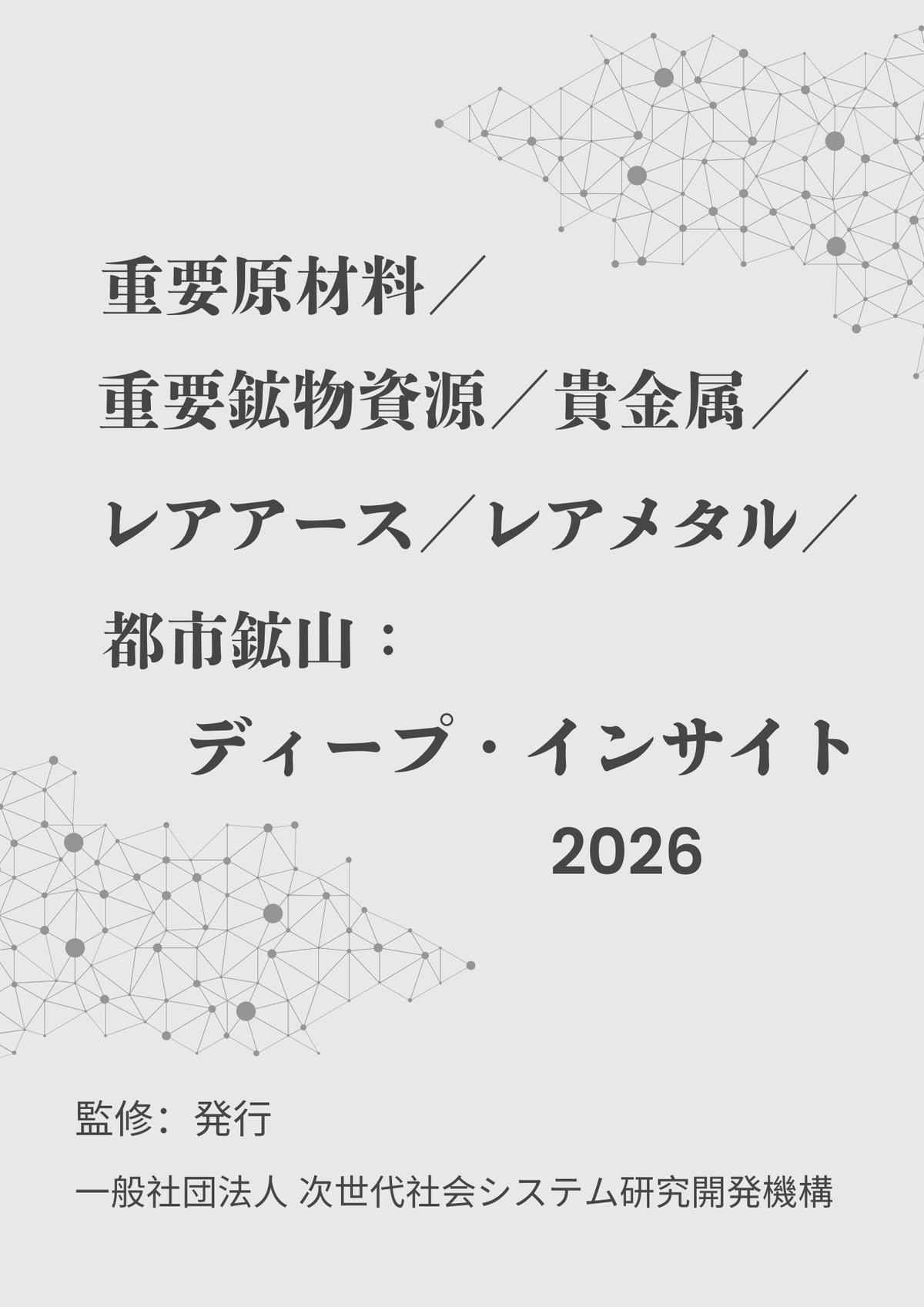 一般社団法人 次世代社会システム研究開発機構(INGS)は2026年3月6日、『重要原材料/重要鉱物資源/貴金属/レアアース/レアメタル/都市鉱山:ディープ・インサイト2026年版』の発刊ならびにその概要を発表した。