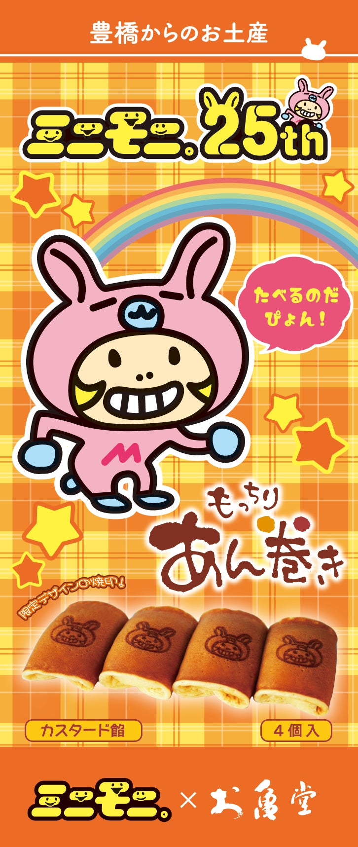 お亀堂のあん巻きは、これまで数年間にわたり、ハロー!プロジェクトのコンサート開催時などに楽屋への差し入れとして重宝され、多くのメンバーに愛されてきた“ご縁”があります。 昨年の同イベント初出展時には、そのご縁から特別にご用意した『小倉バターあん巻き』が大反響を呼び、2日目は開場わずか1時間で完売。買えないファンの方が続出した事態を猛省し、今年は数量を増やして会場へお届けします。こういった長年の実績と地域密着の姿勢が共鳴し、「ミニモニ。25周年」という記念すべき節目に、ミニモニ。公式キャラクター「ミニモちゃん」が地域課題解決のムーブメントに力を貸してくれることになり、本年の特別な新作が誕生しました。