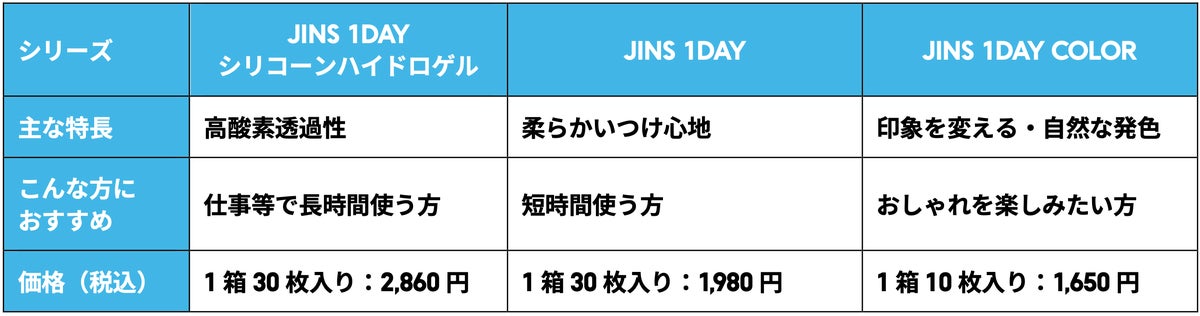 ・JINS 1DAY シリコーンハイドロゲル(新商品):