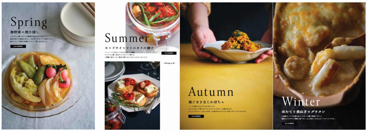 春夏秋冬、季節ごとの旬野菜を楽しめる、作って食べてみたくなる新しいレシピの提案。