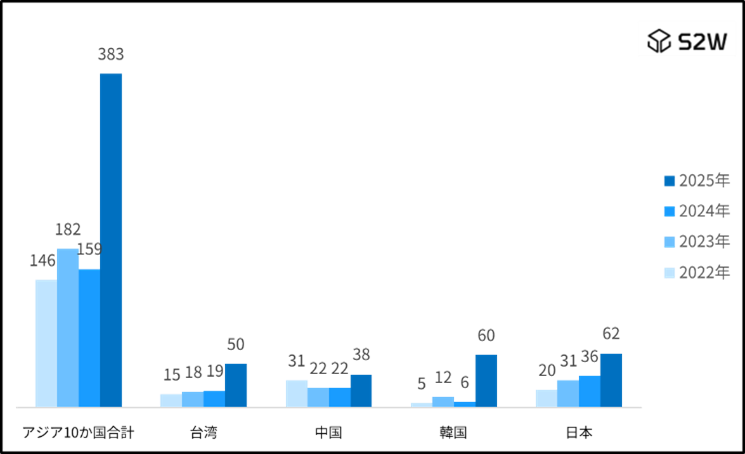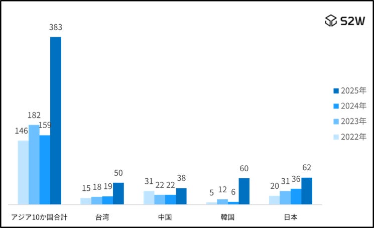 ※分析対象期間:2022-2025年、2025年は1月~10月。アジア10か国は2024年GDPランキング基準で選定。ソース:S2W QUAXAR