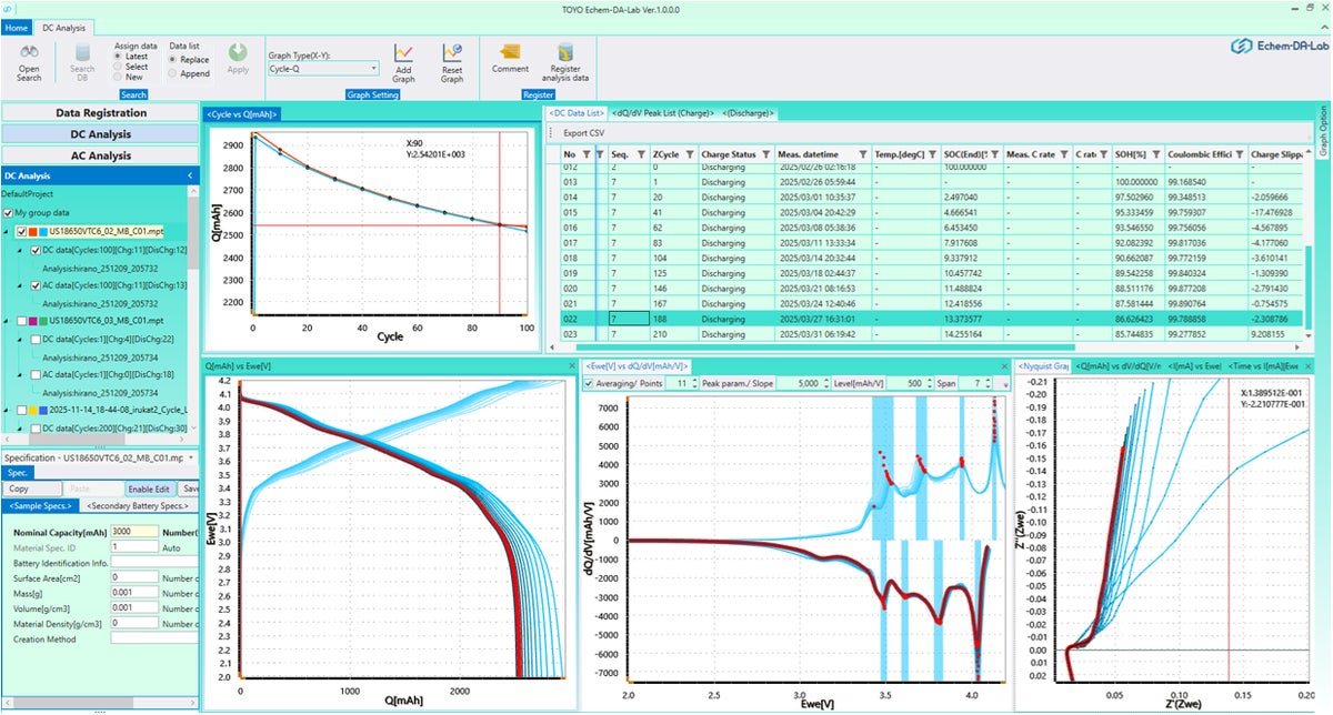 電気化学解析プラットフォーム&二次電池解析パッケージ        「Echem-DA-Lab」