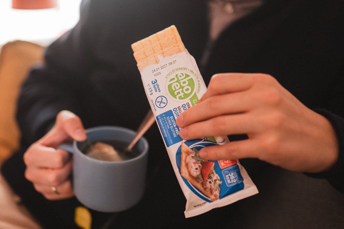アボネットのクラッカーブレッドは、穀物粉などを加熱加圧・押出成形することでつくられるフラットブレッド。焼いても揚げてもいないため、オイルも使用しておらず低カロリー。トースト代わりにもなる、忙しい朝も焼かずにそのまま手軽に食べられる時短アイテムです。そしてこの度、クラッカーブレッドシリーズからグルテンフリータイプが登場しました。