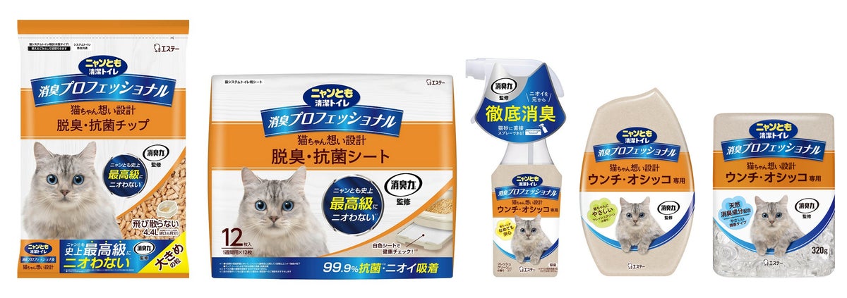 これら「ニャンとも清潔トイレ 消臭プロフェッショナル」シリーズの製品を通じて、トイレのニオイ悩みを解決することで、猫ちゃんにとって清潔でストレスのかからないトイレ環境を実現します。