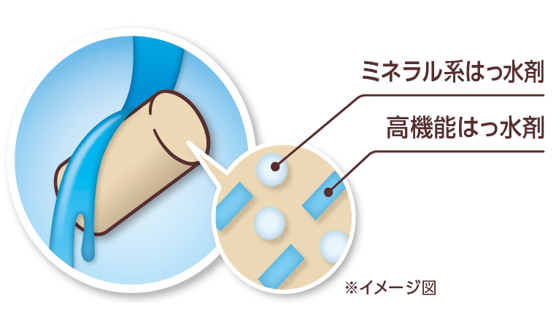 ミネラル系はっ水剤と高機能はっ水剤の2種類のはっ水成分を配合したことにより、オシッコの量が増えてもチップが膨らみにくく、足元をいつもサラサラで清潔な状態に保ちます。