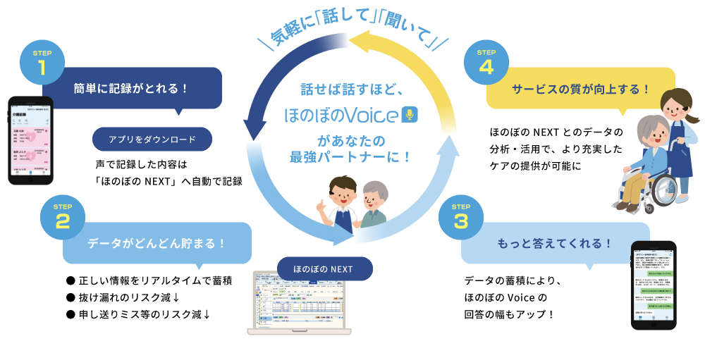本サービスは、2025年5月のリリース以来、多くの介護事業所で導入されている「ほのぼのVoice」の基盤を活用し、追加機材のコストを抑えながら「職員間の音声通話」と「会話の自動テキスト保存」を可能にするものです 。