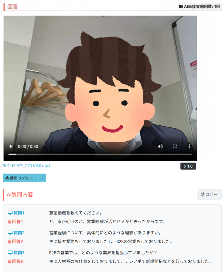 従来の録画面接のような一方通行ではなく、応募者の「質問を理解し、考えて答える力」や「コミュニケーション力」を確認できます。