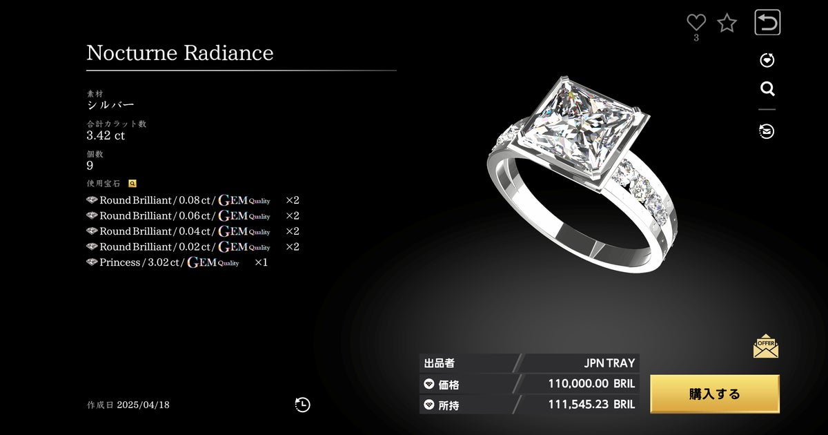 宝石は、ゲーム内で他プレイヤーとBRILトークンで取引をしたり、ジュエリーに加工して販売していくことが可能。