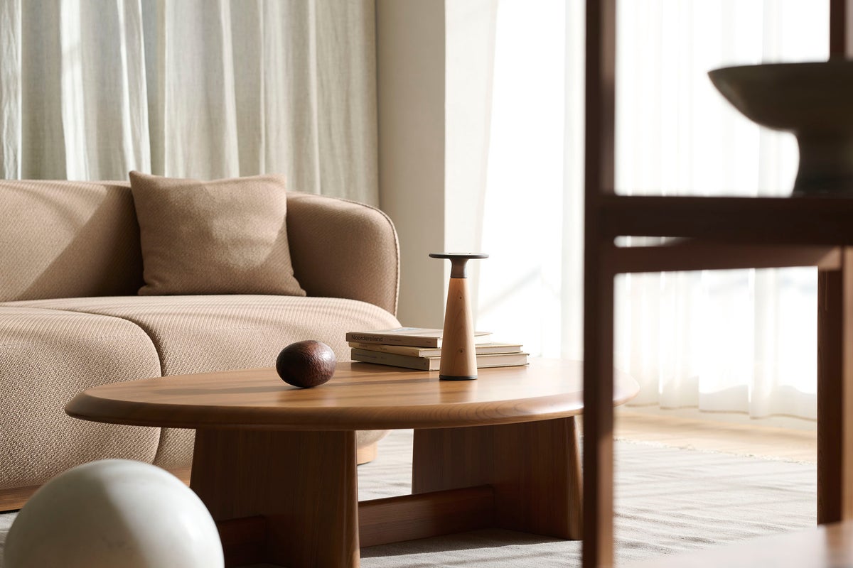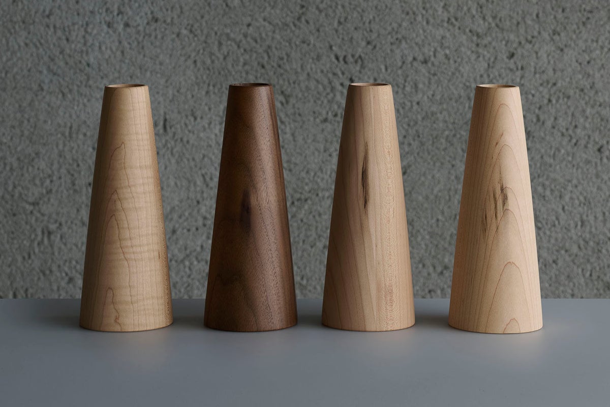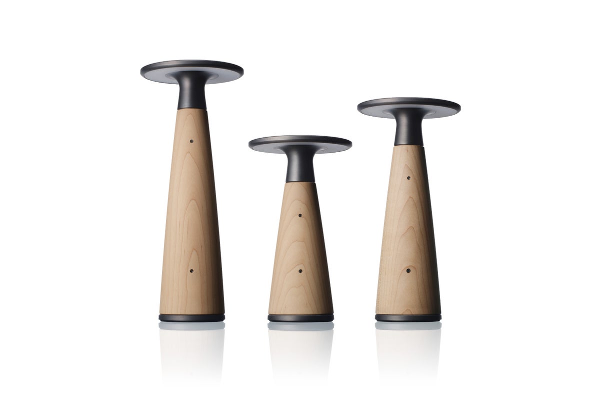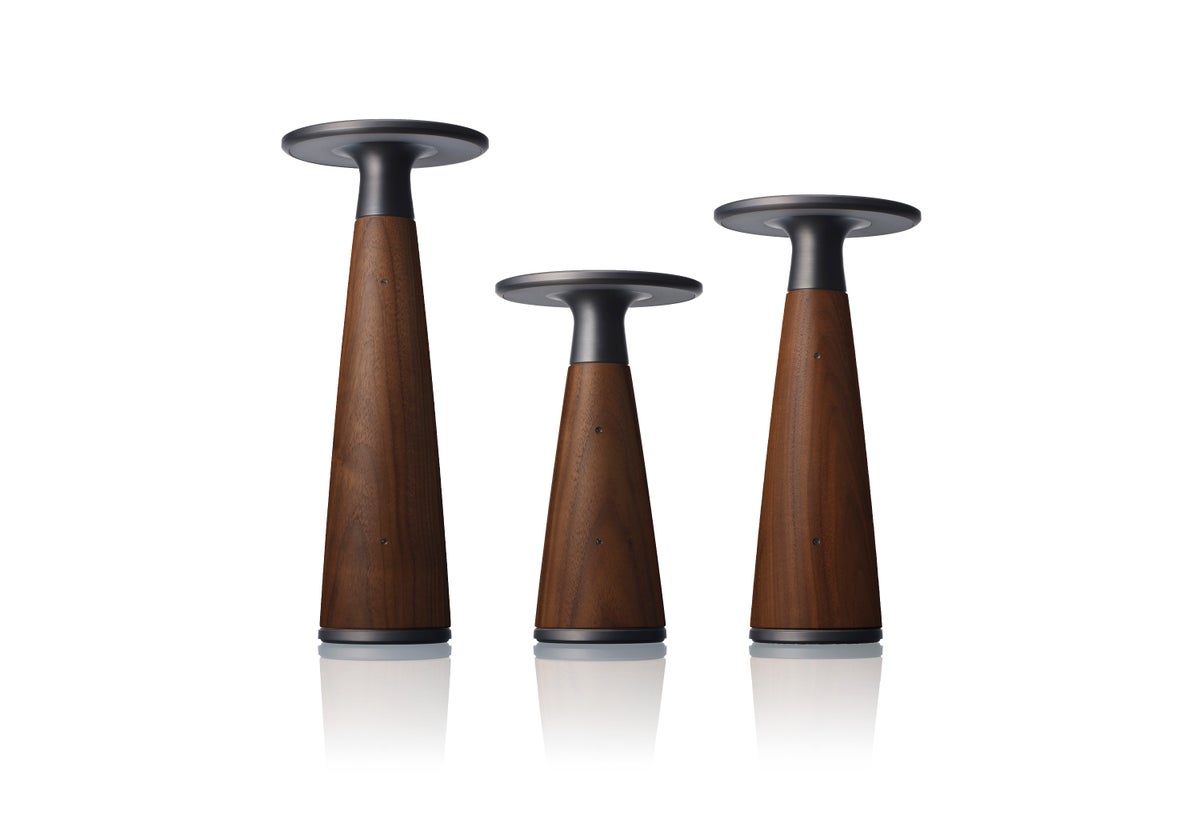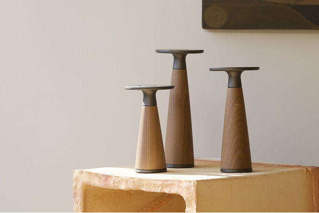 長く使える設計Voscoは、木に負担をかけない内部構造を採用し、パーツごとの修理や交換が可能な設計になっています。さらに用途やシーンに合わせて、中心の木の部分を大・中・小の3つのサイズに切り替えられるほか、メープル、ウォルナットの2種類の木材から選ぶことができ、長く使い続ける中で交換することも可能です。使う人の暮らしが変化しても、ずっと寄り添い続ける光でありたい。そんな想いを込めたデザインです。
