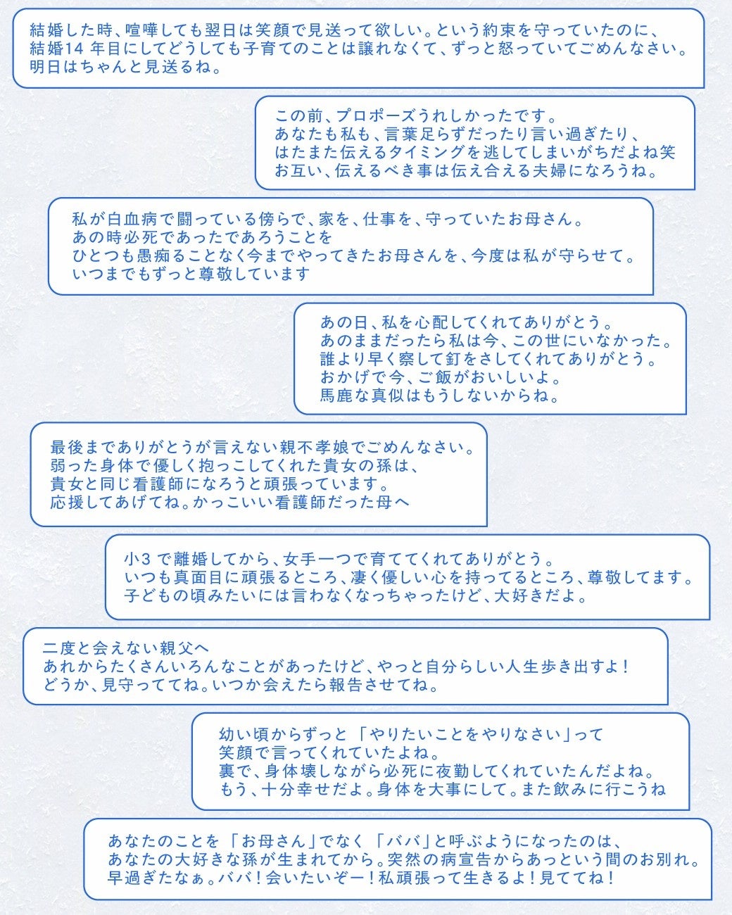 「いつか」を「今日」に変える15年目のメッセージ。公開直後からサイトに寄せられた、大切な人への言葉たち。