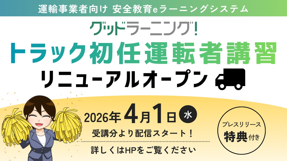 全国37都道府県のトラック協会が公式採用するeラーニングサービス「グッドラーニング!」を運営する株式会社キャブステーション(本社:東京都新宿区、代表取締役:大川洋司)は、2026年4月1日より、主軸サービスである「トラック初任運転者講習」を全面リニューアルオープンいたします。