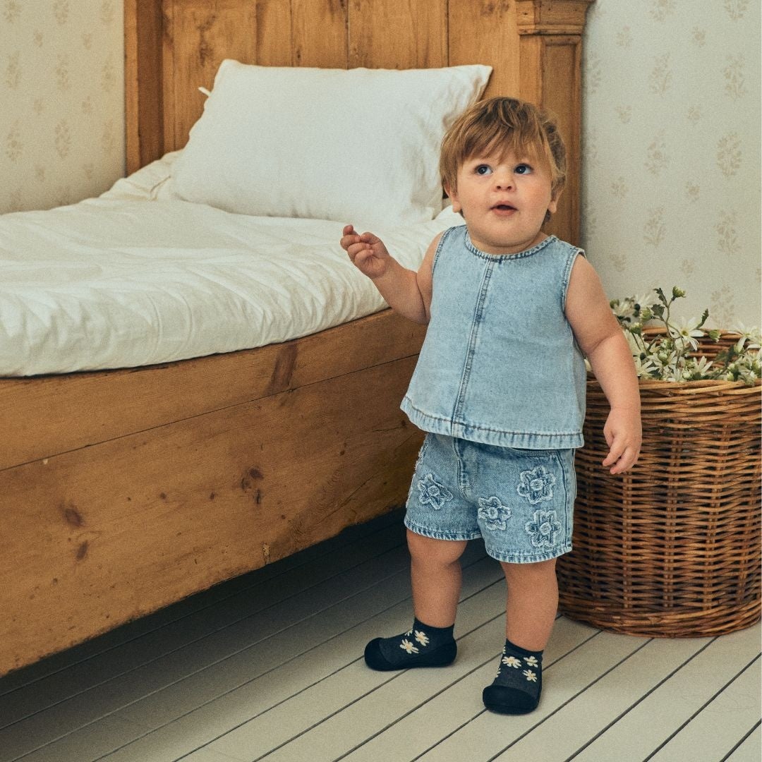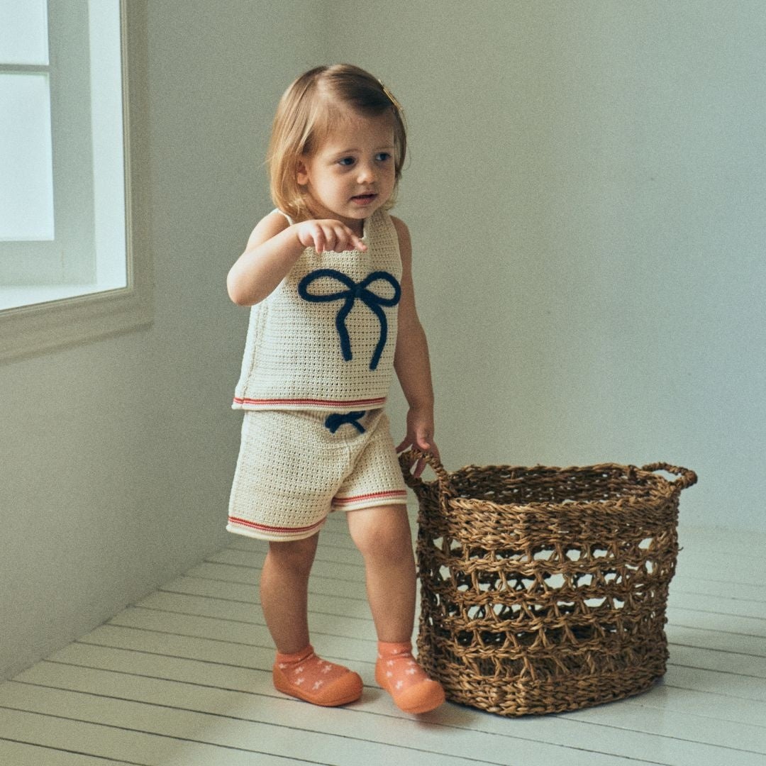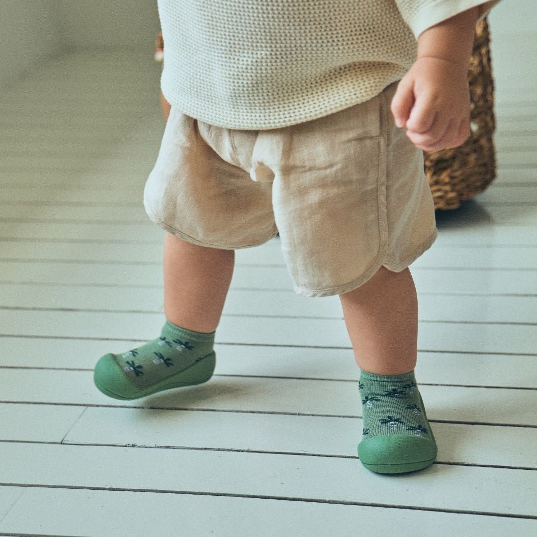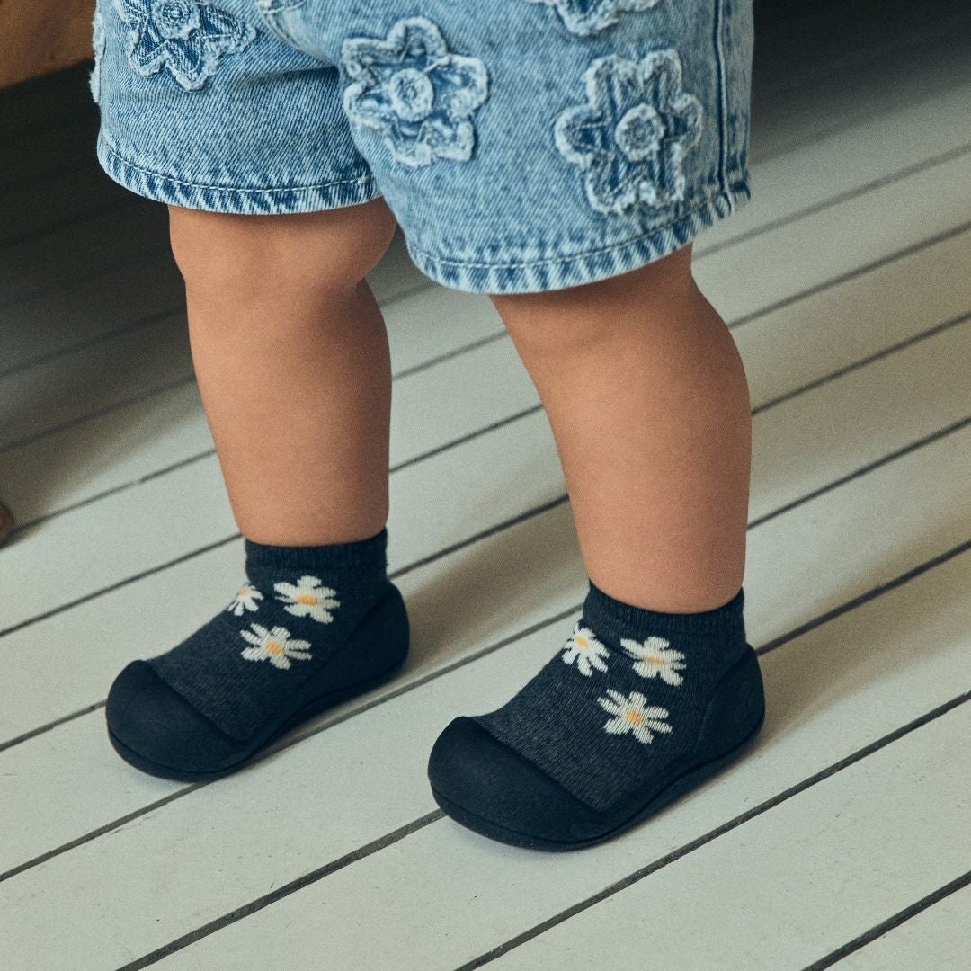 お家の中はもちろん、公園やお散歩など春のお出かけにもぴったり。赤ちゃんの足にやさしくフィットし、歩き始めの一歩一歩を自然にサポートするソックスシューズとして、毎日の歩く時間を快適に支えます。