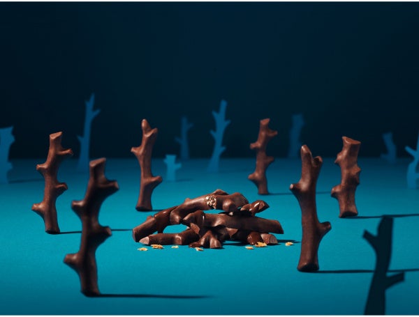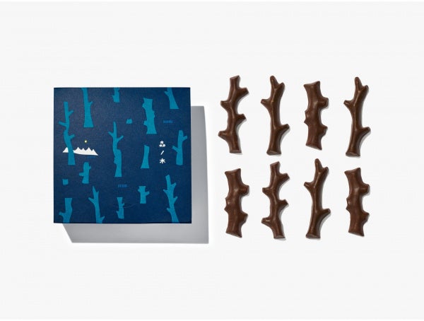 版画家 大谷一良さんの作品「森の見る夢」の木々をモチーフにした3つの形のチョコレートが特徴です。