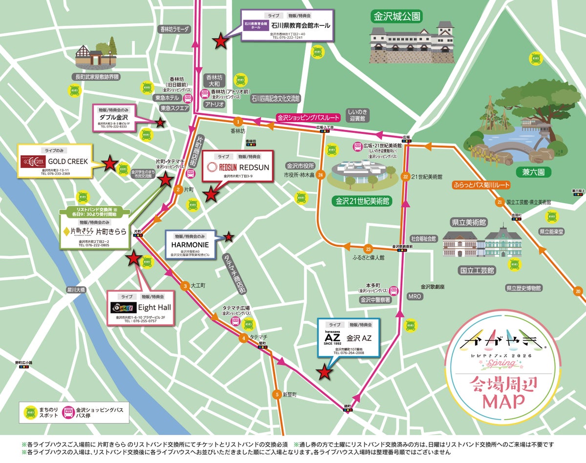 全会場共通入場チケット(Eight Hall / REDSUN / 石川県教育会館 ホール / 金沢AZ / 金沢GOLD CREEK)各1日券とお得な2日通し券の販売となります。