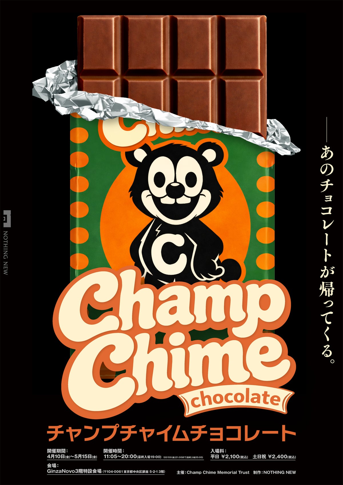 映画レーベル NOTHING NEWは2026年4月10日(金)からGinzaNovo 3F特設会場にて企画展『Champ Chime Chocolate(チャンプチャイムチョコレート)』を開催いたします。