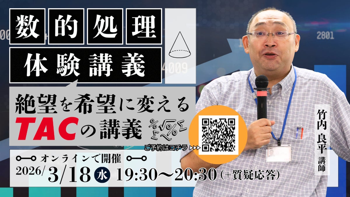 資格取得に向けた教育サービスを展開しているTAC株式会社(東京都千代田区、代表取締役社長:多田 敏男)では、公務員試験を検討されている皆様へ「数的処理 体験講義~絶望を希望に変えるTACの講義~」をオンラインで開催します。
