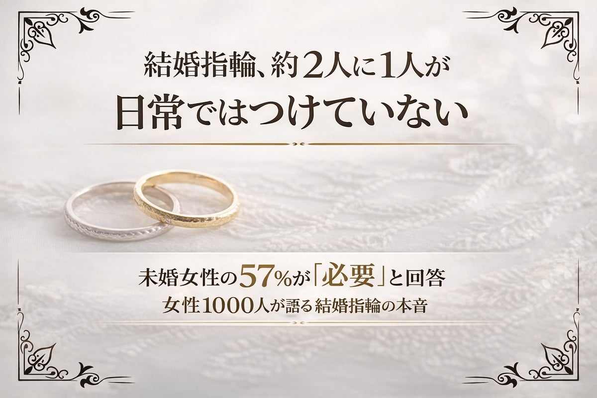 ・未婚女性の57.0%が「結婚指輪は必要」と回答する一方、既婚女性の45.2%は“日常的に着けていない”実態が明らかに。理想と現実のギャップが浮き彫りに。